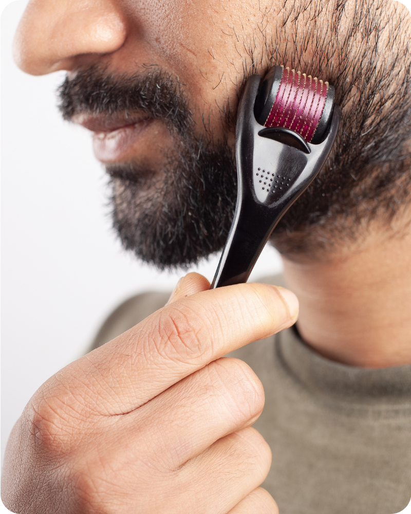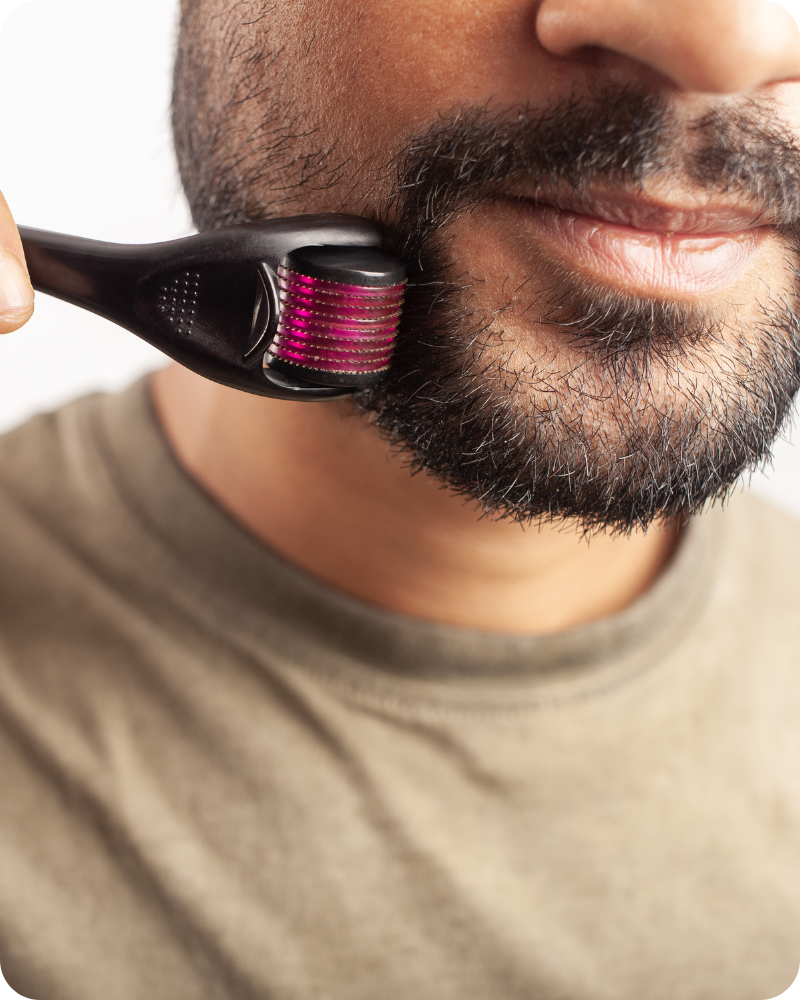 3. Apply the Product: For Beard Oil or Balm, use a small amount and massage evenly through your beard and skin. For the Derma Roller, gently roll over the beard area.